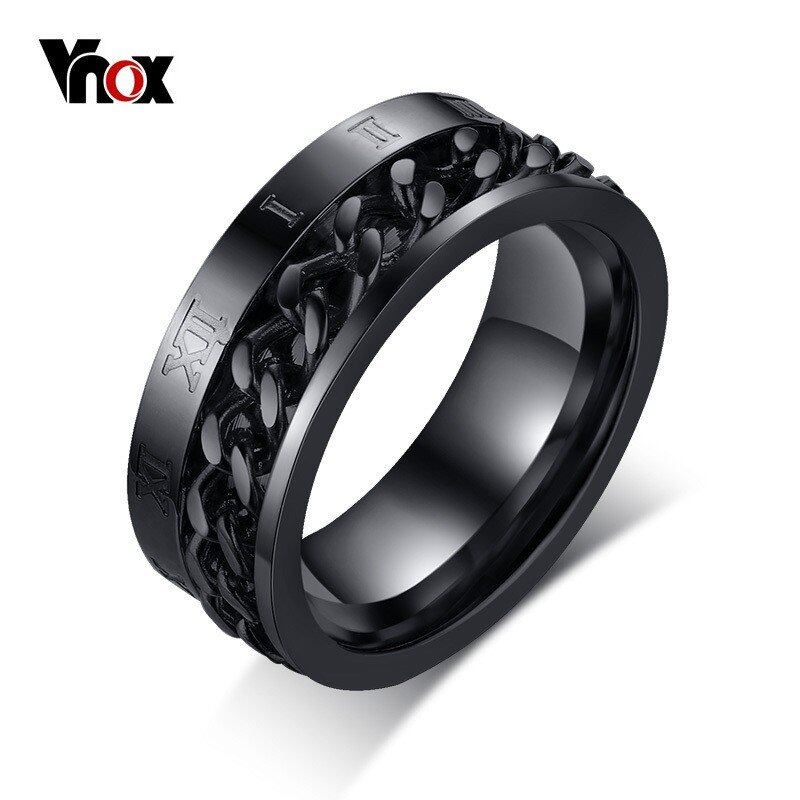 ロック パンク メンズ スピナー リング 指輪 ステンレス 8mm リング 指輪 ブラックゴールドシルバー カラー チェーン カクテル リング 指輪 USA サイズ 812