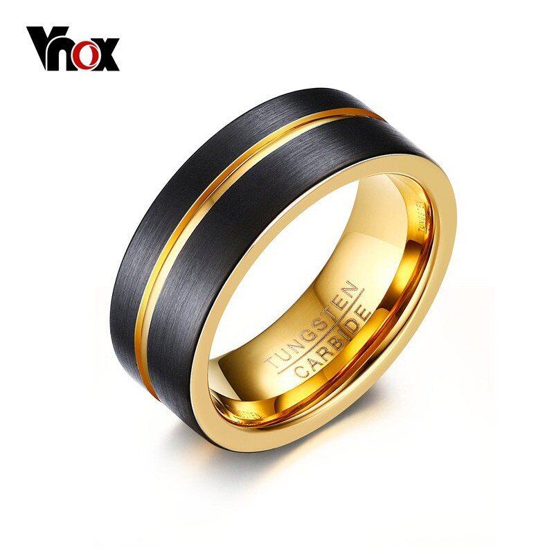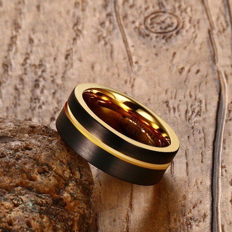 薄い ゴールド ライン リング 指輪 メンズ 8mm ブラック タングステン カーバイト リング 指輪