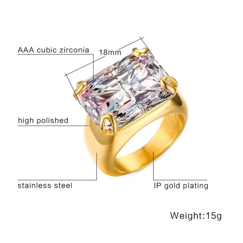 高級 キュービックジルコニア 石 リング 指輪 レディース スクエア ジルコン リング 指輪 ゴールド ステンレス