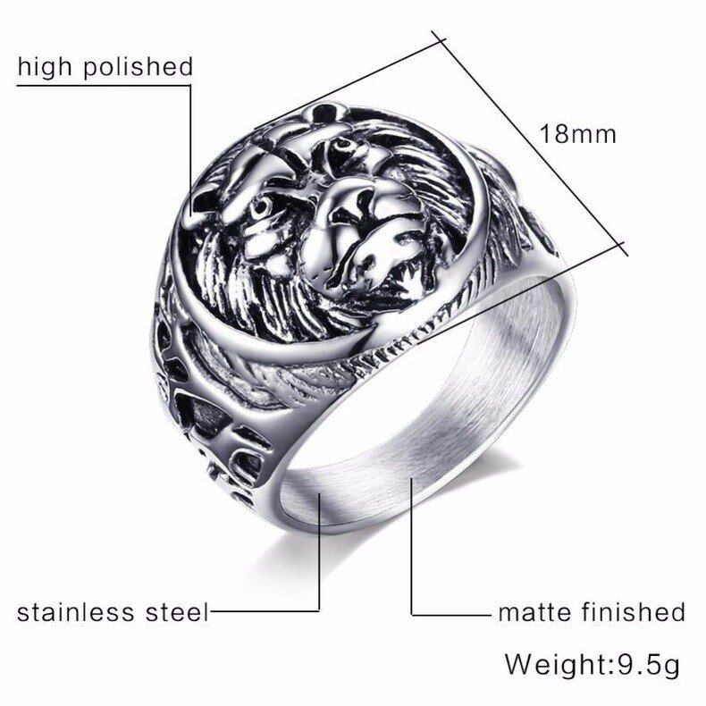 レトロ スタイル 動物 アニマル ライオン ステンレス リング 指輪 バイカー ロック メンズ