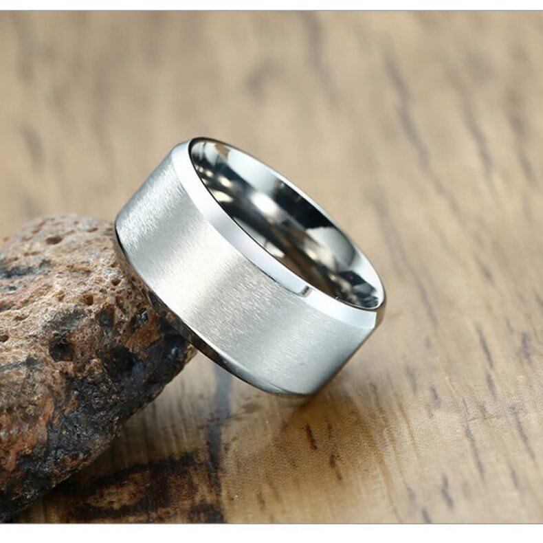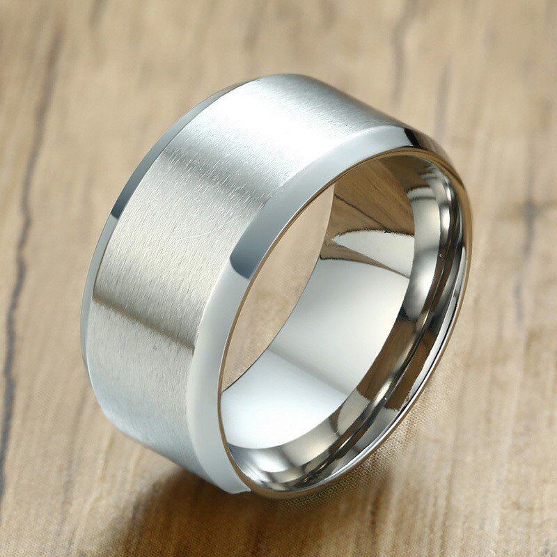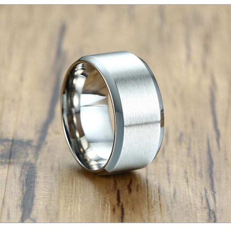 ベーシック メンズ 結婚式 バンド リング 指輪 10mm ステンレス マット フィニッシュ ポリッシュ エッジ コンフォート フィット