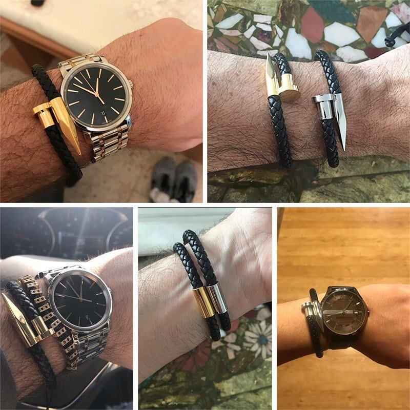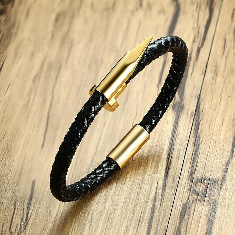 スタイリッシュ ネイル デザイン リアル レザー ブレスレット メンズ バングル マグネティック ステンレス メンズ ブレスレット