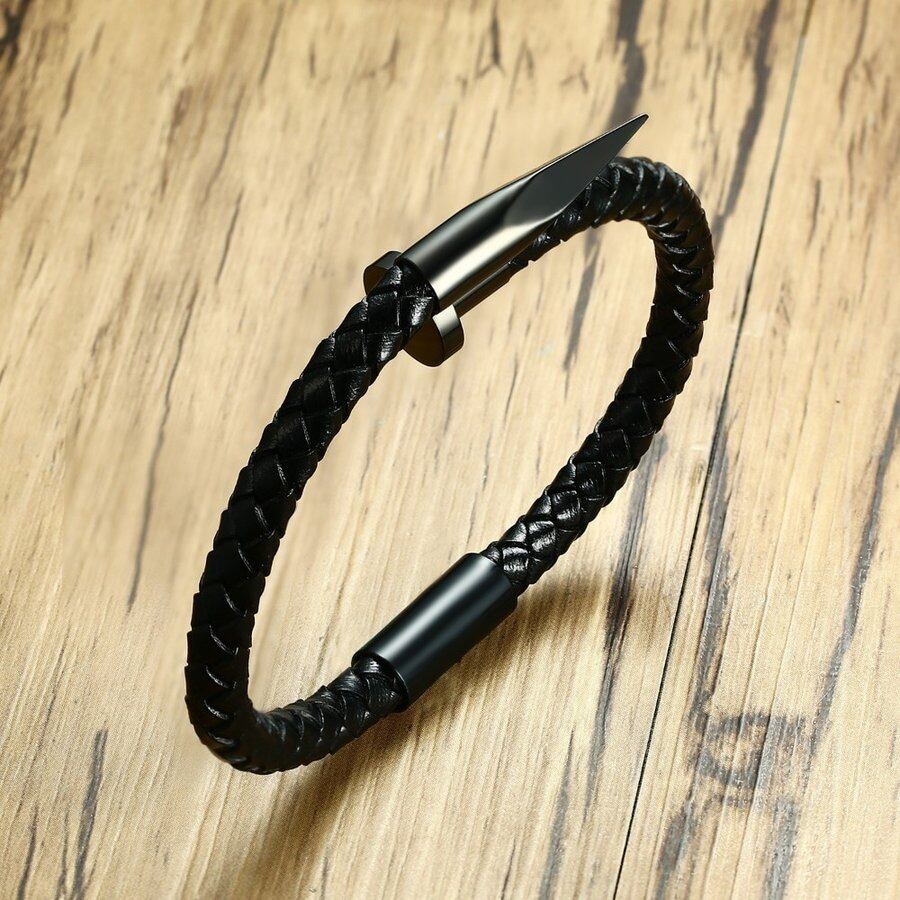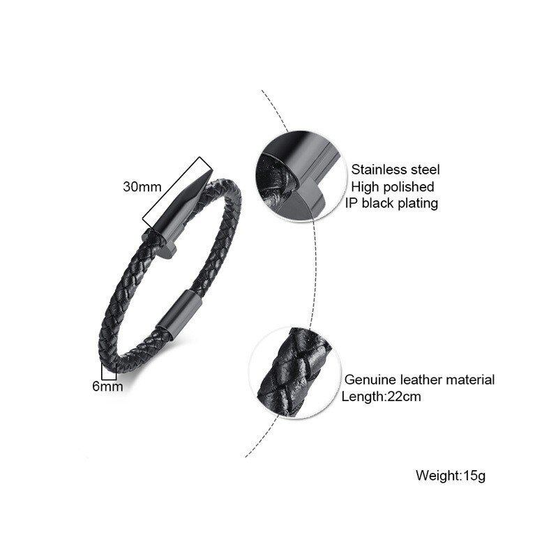 【送料無料】 メンズ ブレスレット バングル スタイリッシュ ネイル デザイン リアル レザー マグネティック ステンレス 40000512