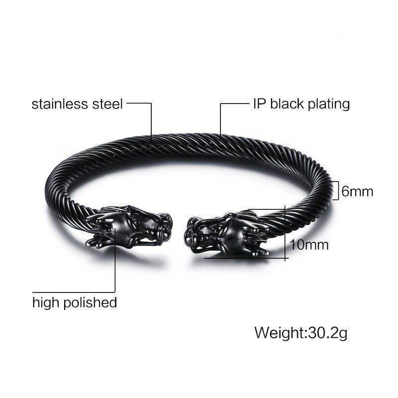 ドラゴン ヘッド カフ ブレスレット バングル メンズ ステンレス ツイスト ワイヤー バイキング ビンテージ メンズ