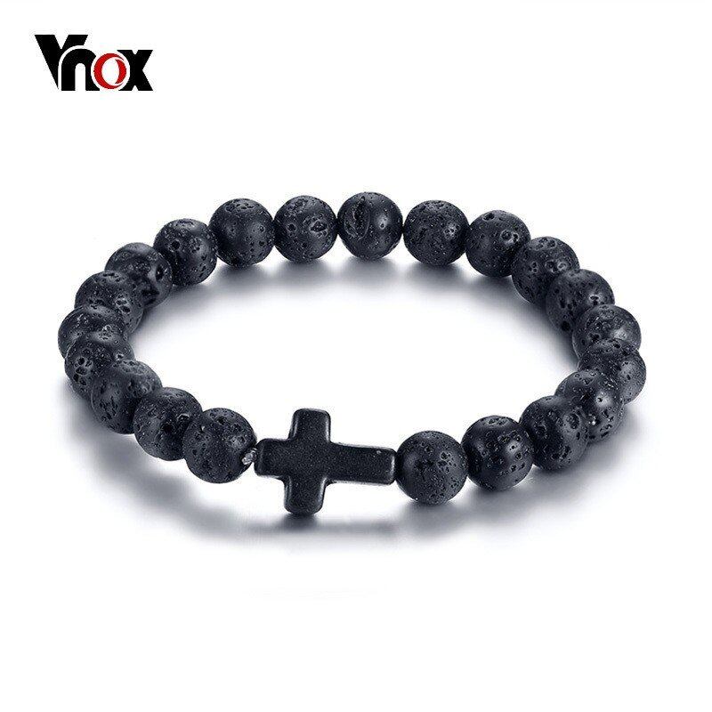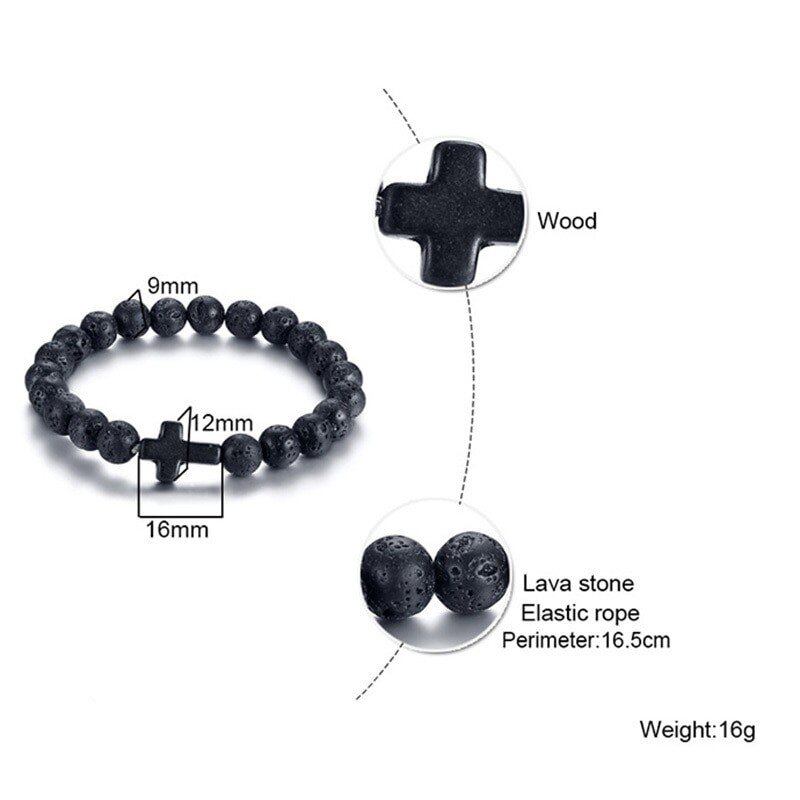 火山 エネルギー 溶岩 石 ブラック 赤 レッド ウッド クロス チャーム ブレスレット レディース メンズ ヨガ ビーズ ユニセックス ストレッチ ブレスレット