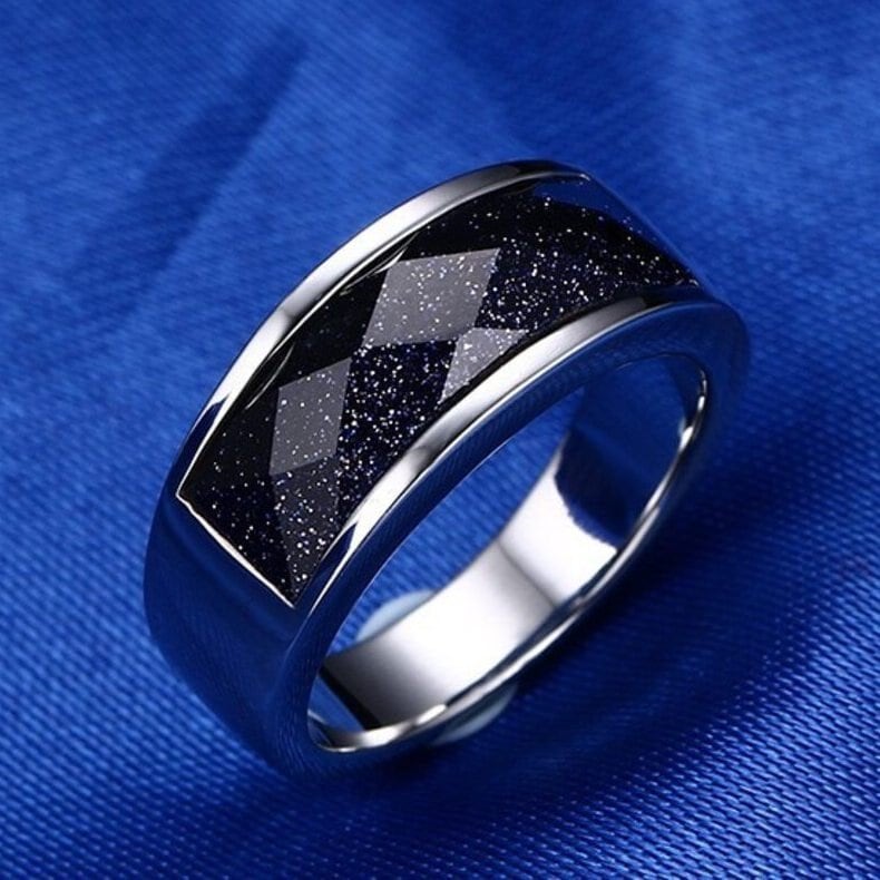 ユニーク 青 ブルー 砂利 リング 指輪 レディース シルバー 星空 空 石 リング 指輪