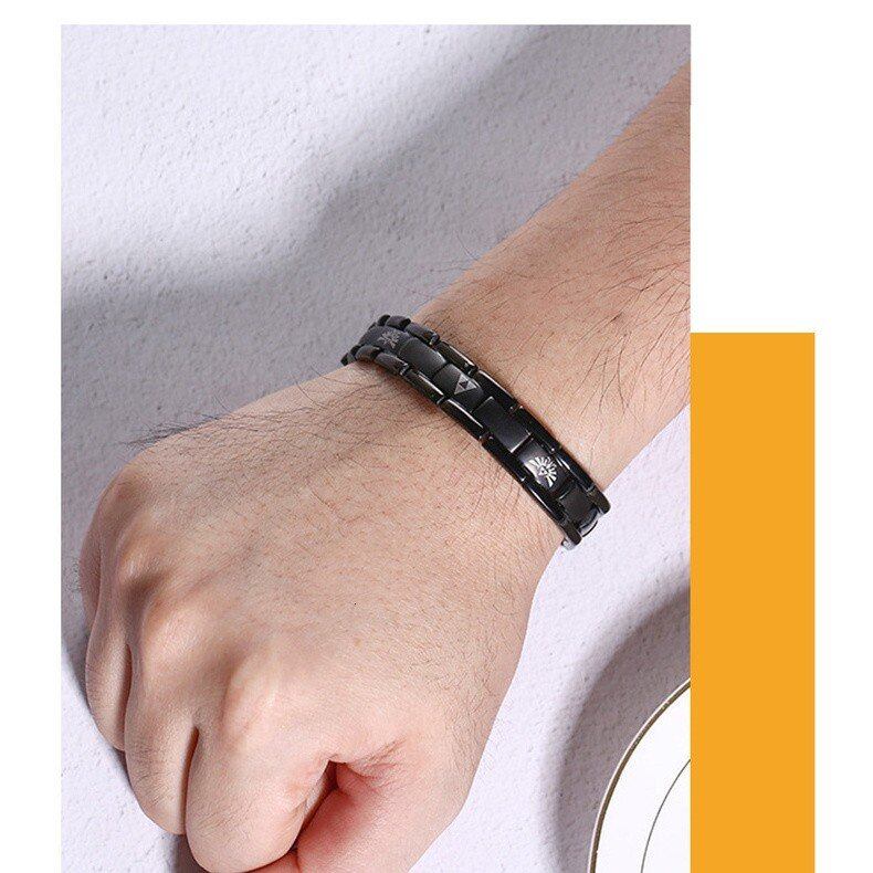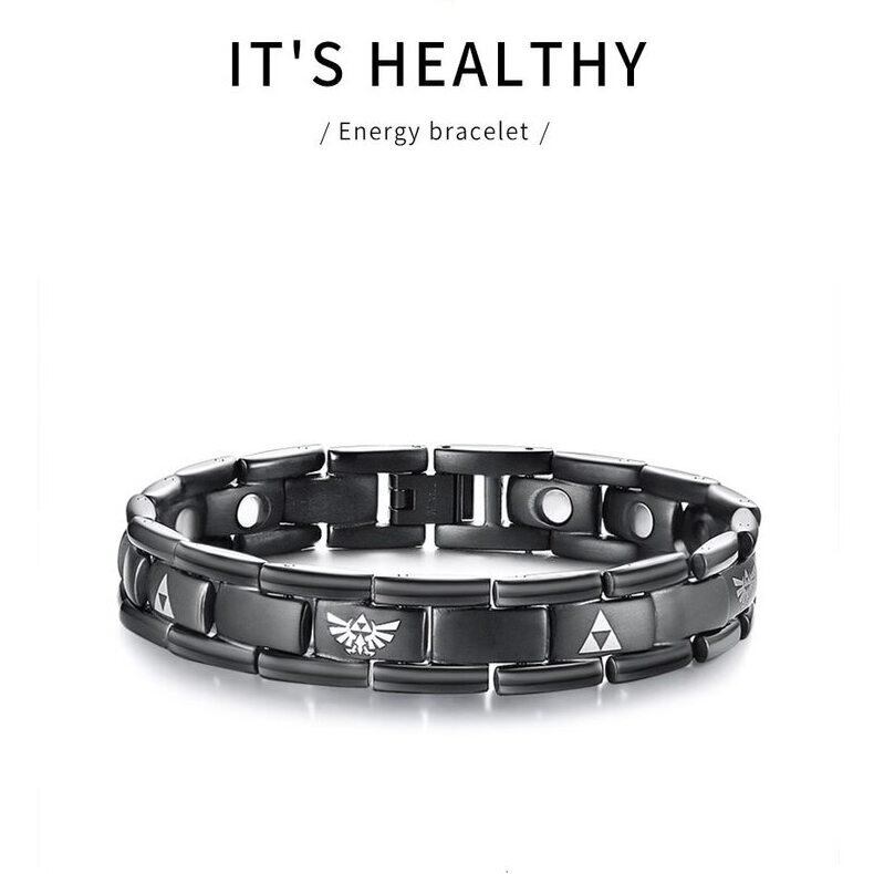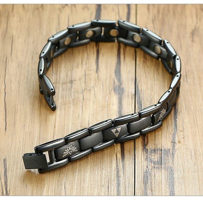 スタイリッシュ ゼルダ チャーム マグネティック ブレスレット メンズ ブラック ステンレス 健康 エネルギー 手首 ブレスレット バングル