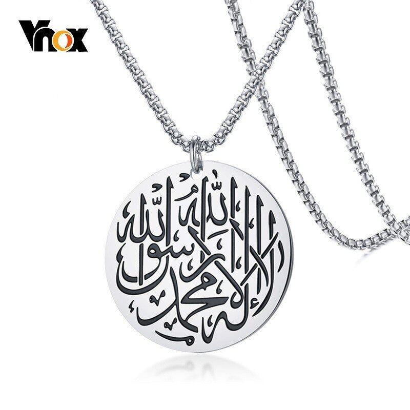 メンズ ステンレス ラウンド ムスリム イスラム 神 ペンダント ネックレス ボックス チェーン ゴールド シルバー カラー