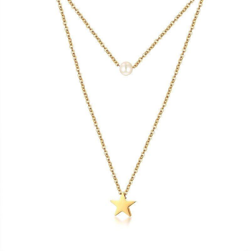 エレガント フェイク パール チョーカー ネックレス レディース ゴールド トーン ステンレス バー スター チャーム 襟