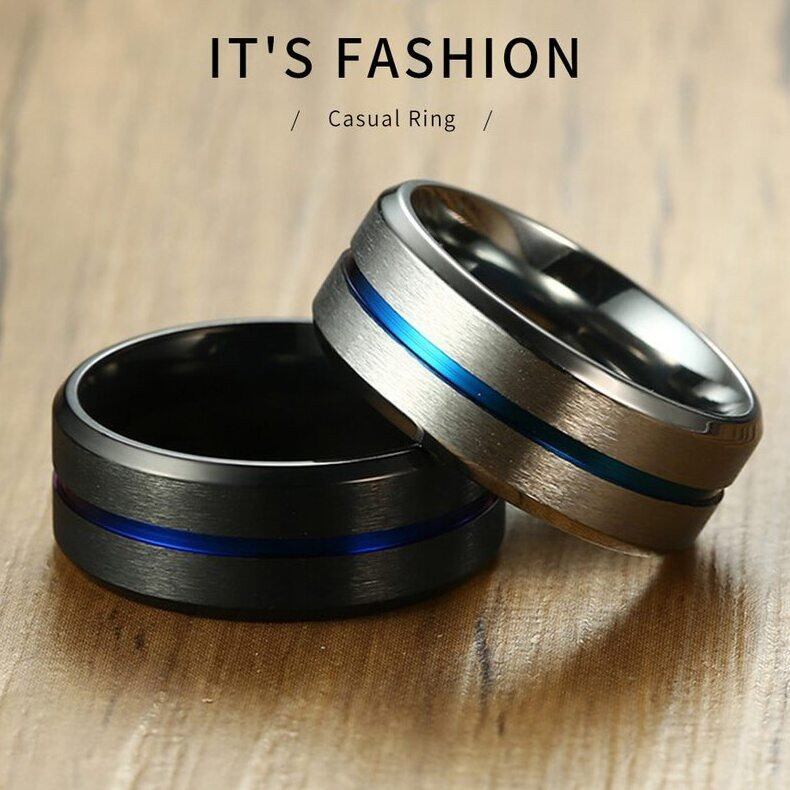 8mm カジュアル ブラック メンズ リング 指輪 青 ブルー ライン ステンレス メンズ 結婚式 バンド コンフォート ジェントルマン