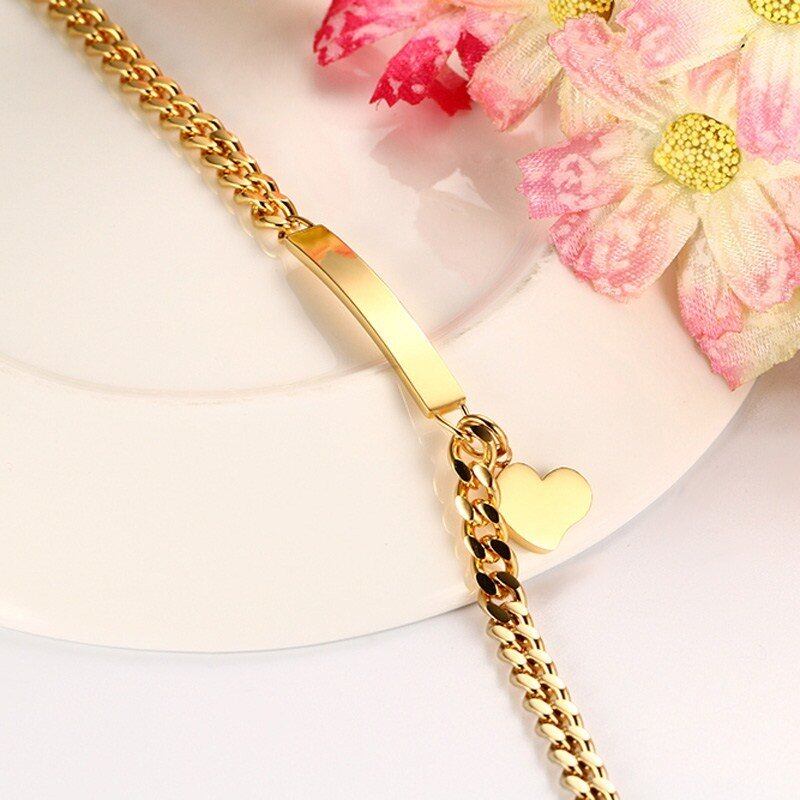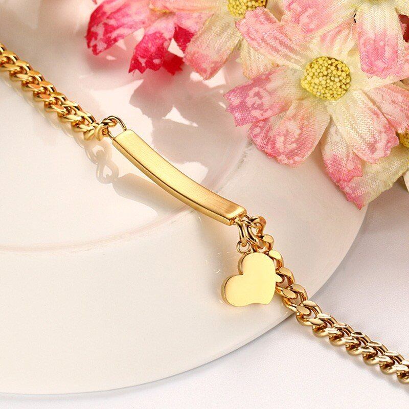 刻印 薄い タグ ブレスレット ハート チャーム バングル レディース ステンレス チェーン チャーム ブレスレット レディ