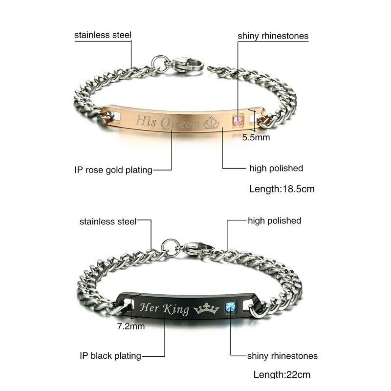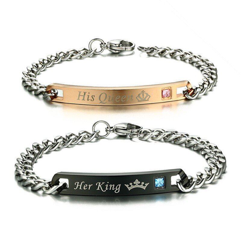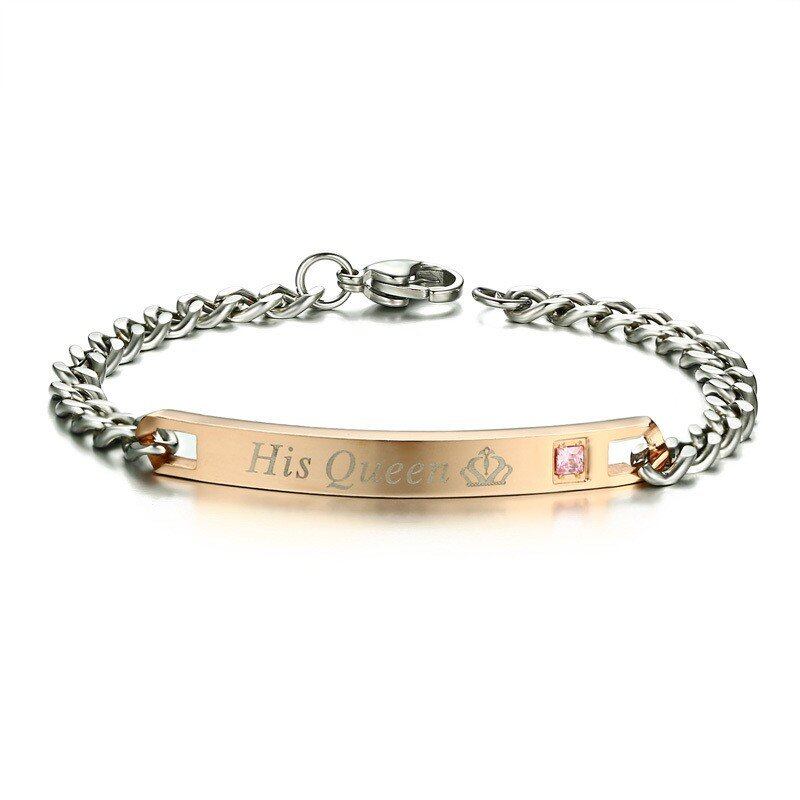【送料無料】 レディース ブレスレット 刻印 クイーン キング カップル メンズ CZ クラウン チャーム チェーン 40000700