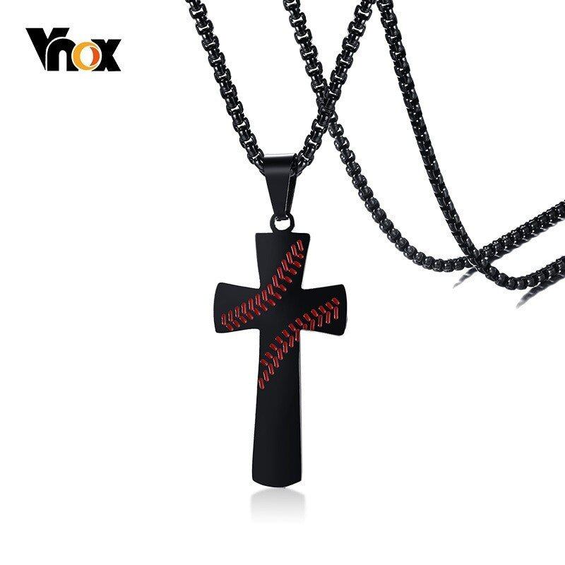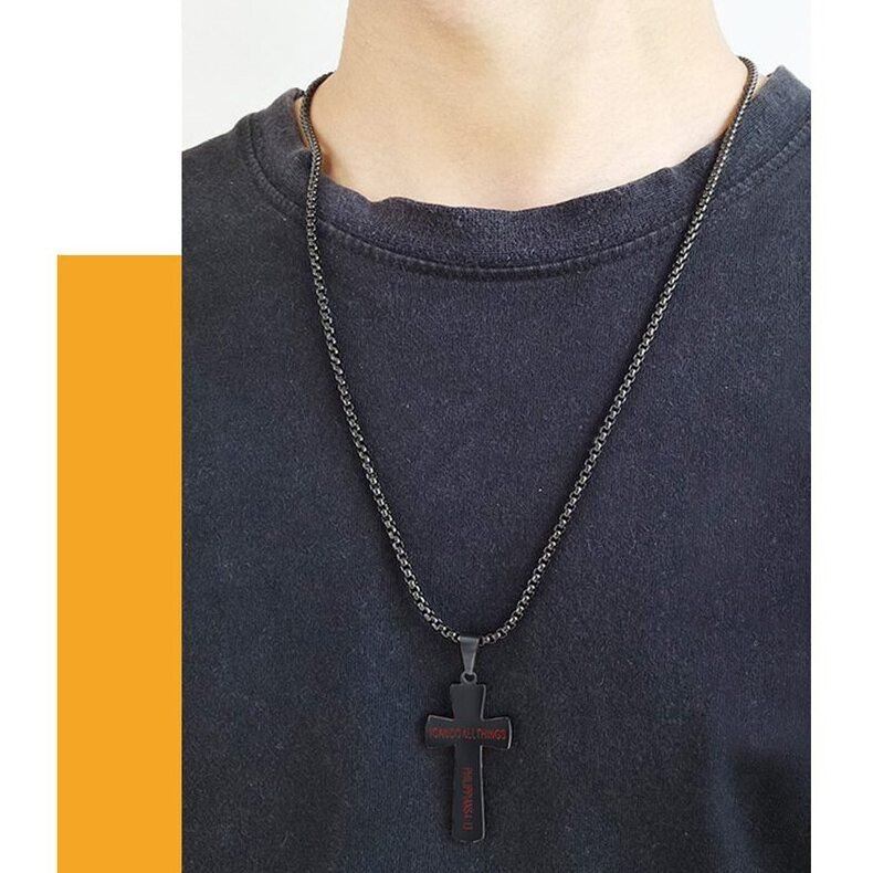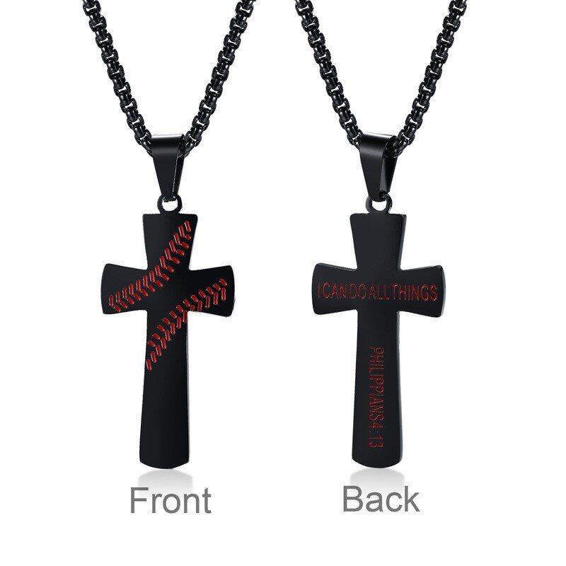 野球 クロス ペンダント 詩 メンズ ネックレス 4:13 ステンレス キリスト 祈り カジュアル 61cm チェーン