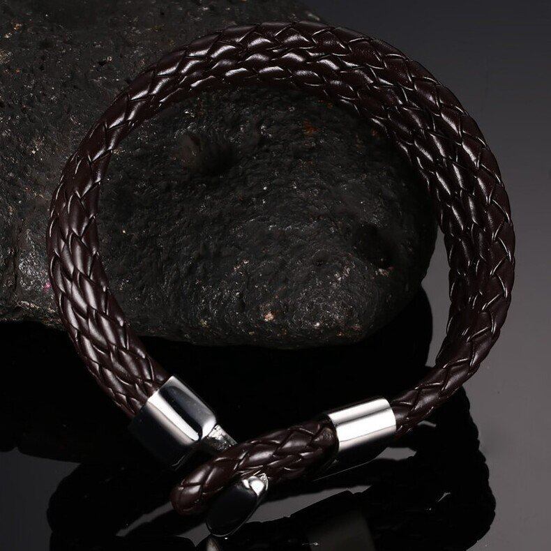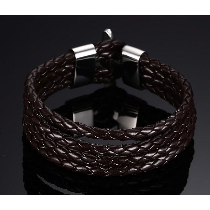 【送料無料】 メンズ ブレスレット ハンドメイド 4 レイヤー 編み込み レザー ブラウン ブラック 40000723
