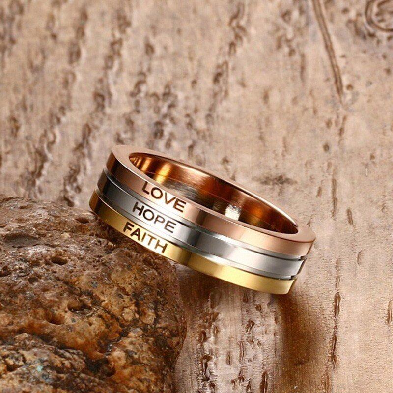 3 トーン ミックス カラー リング 指輪 レディース LOVE HPE FATH 結婚式 バンド リング 指輪