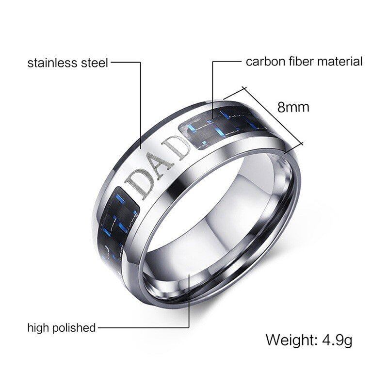 トレンド メンズ リング 指輪 青 ブルー カーボン 8mm ステンレス 家族 LOVE DAD リング 指輪 お父さん