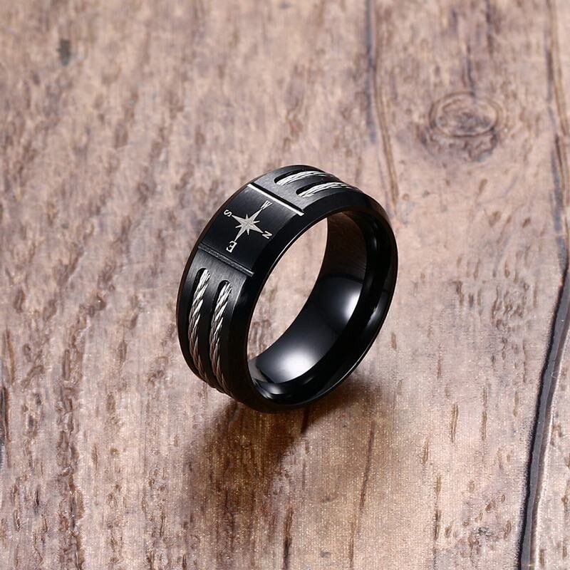 コンパス ブラック メンズ リング 指輪 ツイスト シンプル ステンレス