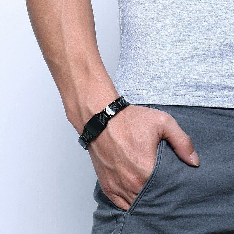 スタイリッシュ メンズ カーボン エネルギー ブレスレット 健康 マグネティック リンク チェーン ブレスレット バングル パーフェクト アクセサリー
