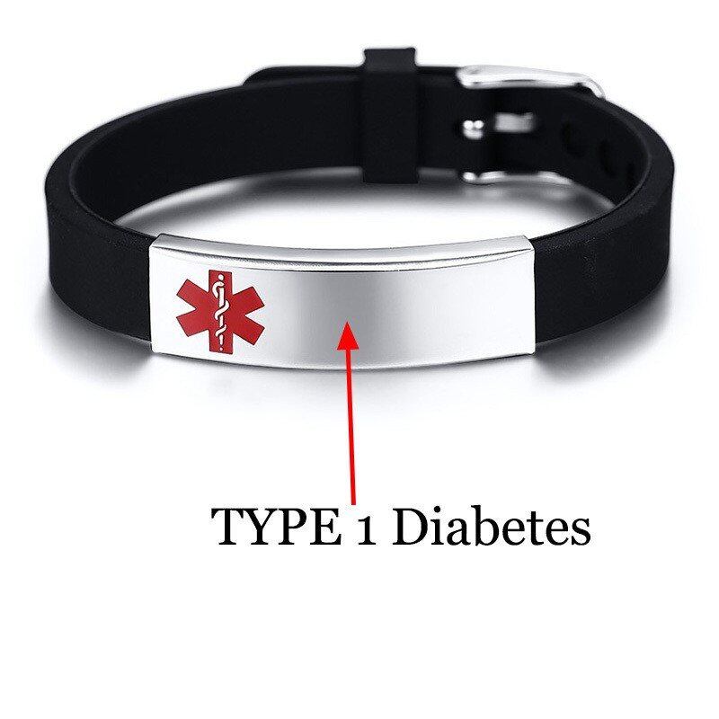 刻印 レコード カスタマイズ メディカル アラート ブレスレット 長さ フリーサイズ ブラック シリコン ストラップ ブレスレット バングル