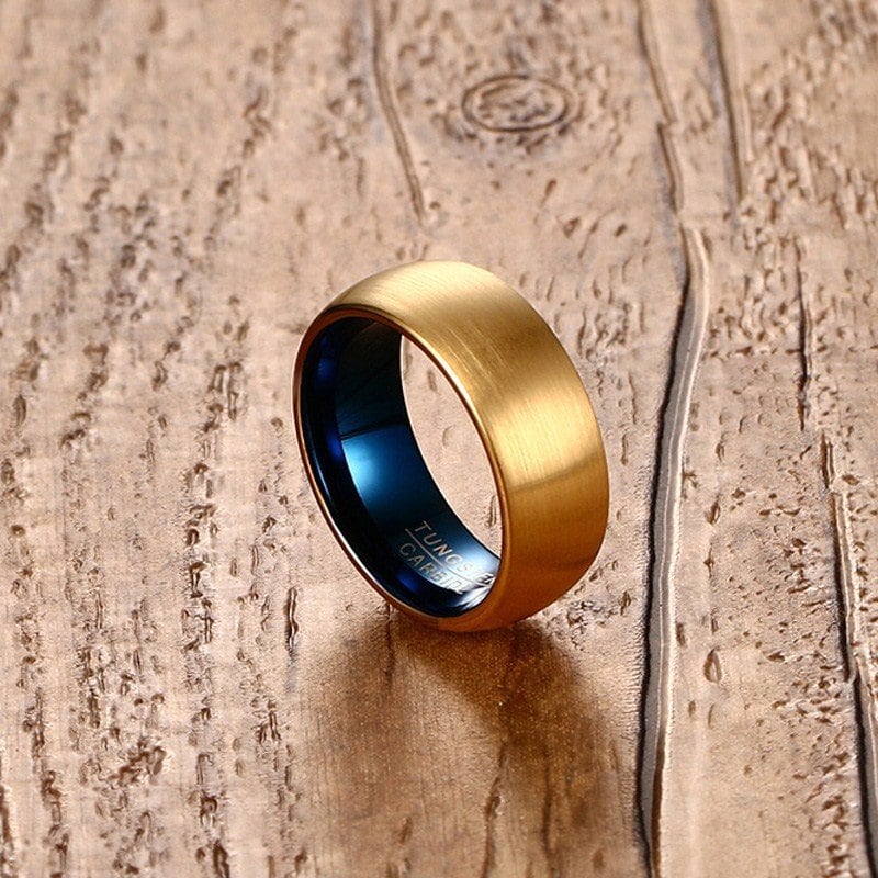 メンズ 青 ブルー タングステン リング 指輪 クラシカル ゴールド リング 指輪 メンズ タングステン