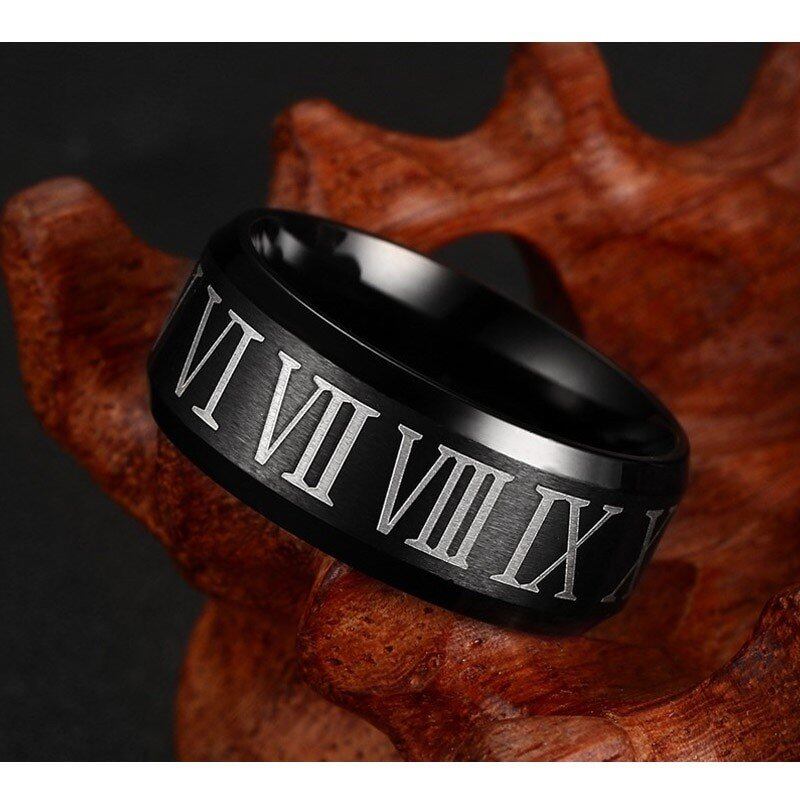 ローマン 数字 黒 ブラック リング 指輪 ステンレス クール メンズ リング 指輪 カクテル 結婚式