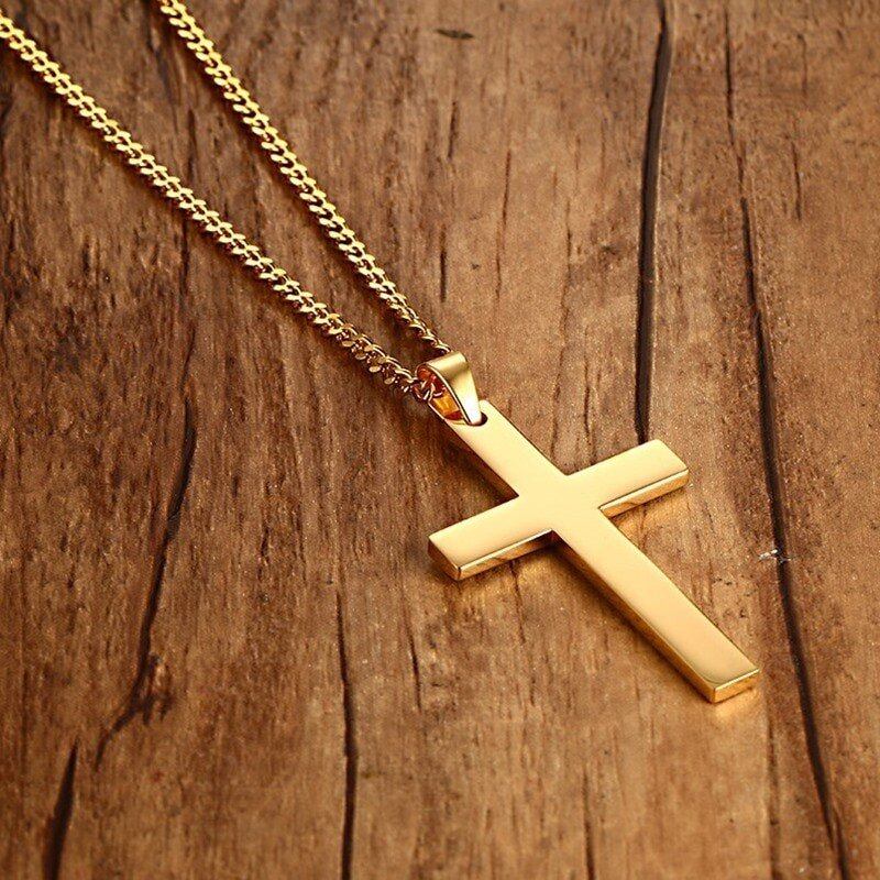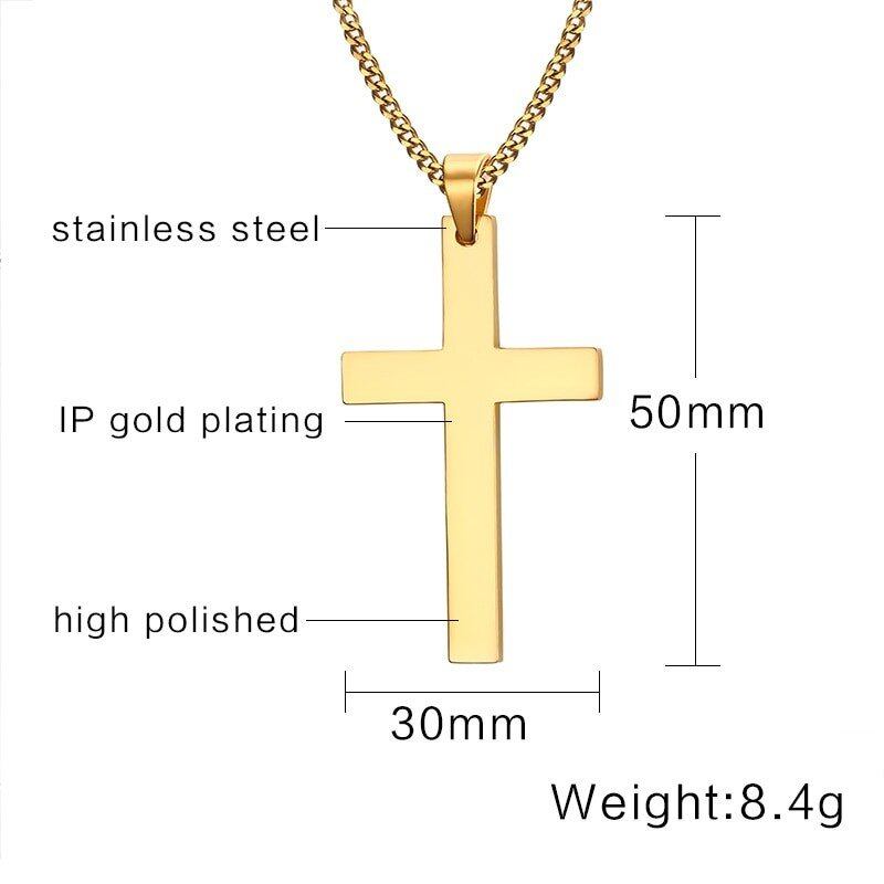 61cm メンズ ステンレス キューバ チェーン ネックレス シンプル クロス ゴールドカラーブラックシルバー カラー ペンダント