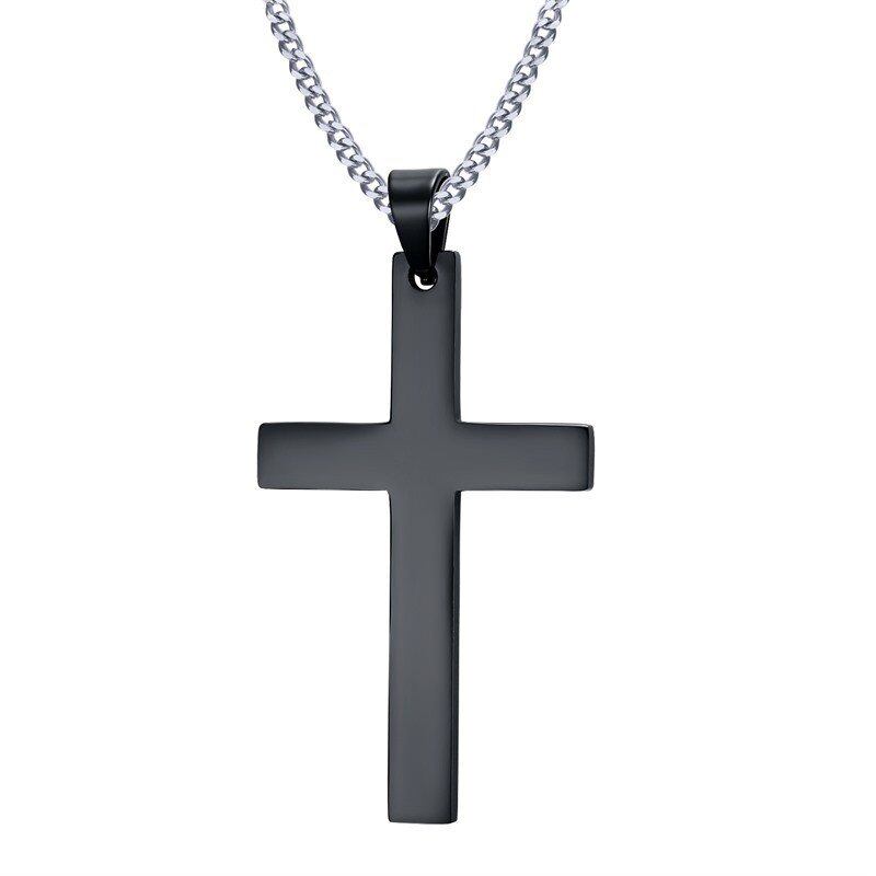 【送料無料】 メンズ ネックレス 61cm ステンレス キューバ チェーン シンプル クロス ゴールドカラーブラックシルバー ペンダント 40000915
