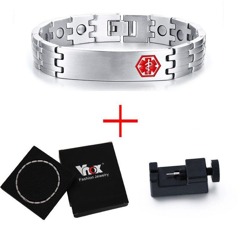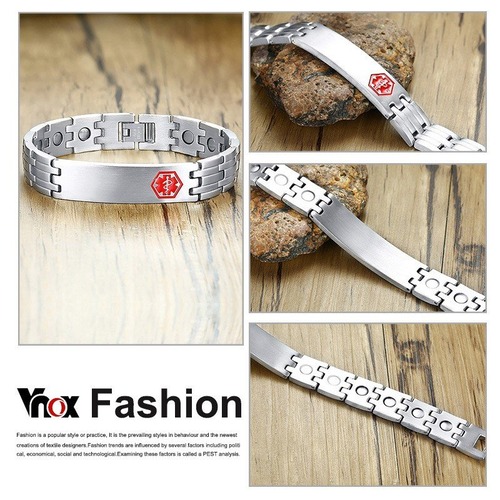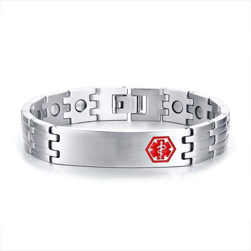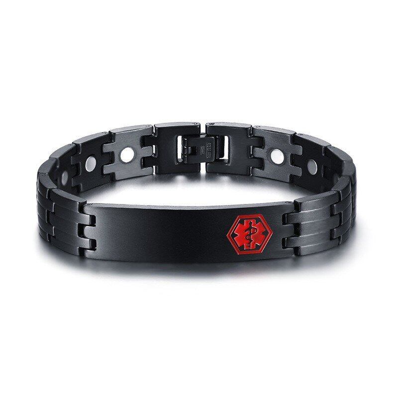刻印 マグネティック ブレスレット メンズ メディカル アラート バングル ステンレス セラピー ヒーリング カジュアル メンズ