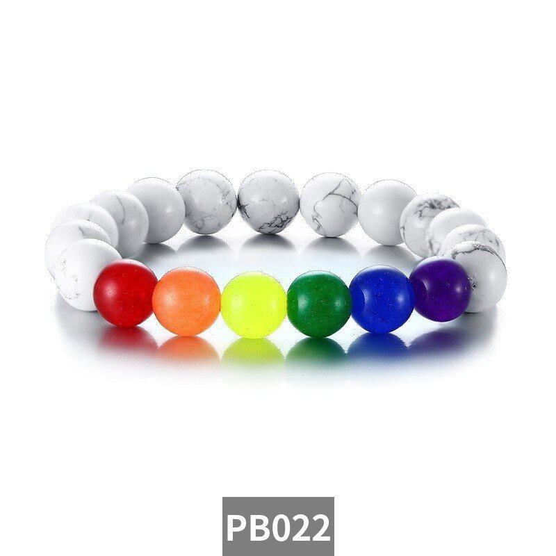 レインボー ビーズ チャーム ブレスレット ナチュラル 石 LGBT 手首 ブレスレット