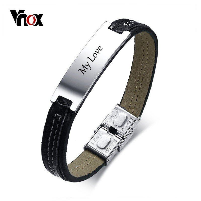 11mm ブラック レザー ブレスレット メンズ バングル ステンレス メンズ