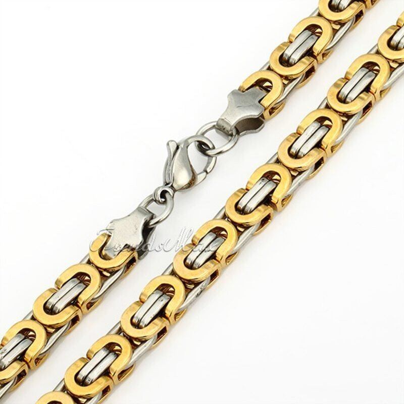 6mm メンズ チェーン フラット ゴールド シルバー ステンレス ネックレス ブレスレット セット 20000560