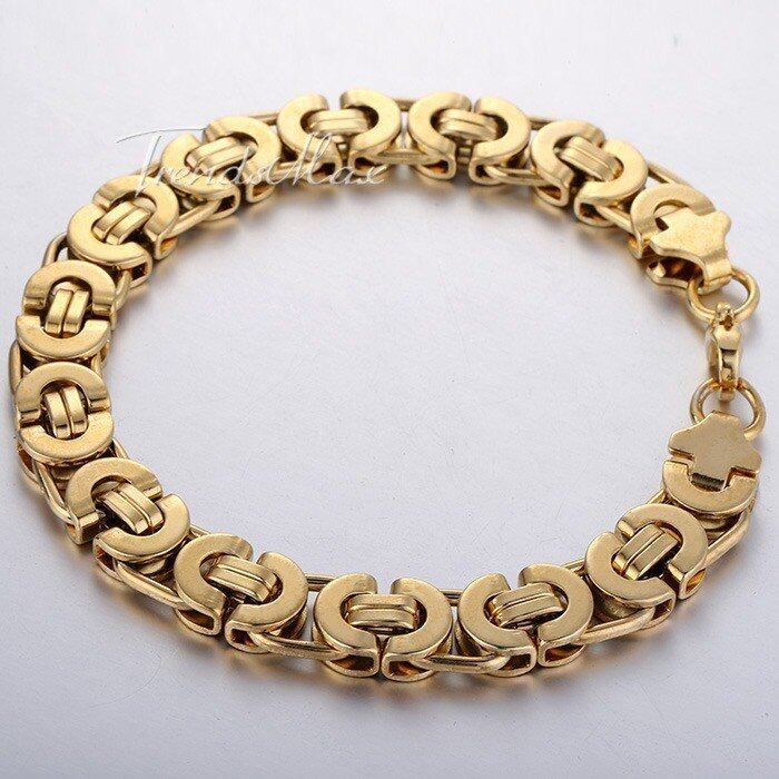 11mm メンズ チェーン ゴールド フラット ステンレス ブレスレット ネックレス 20000769