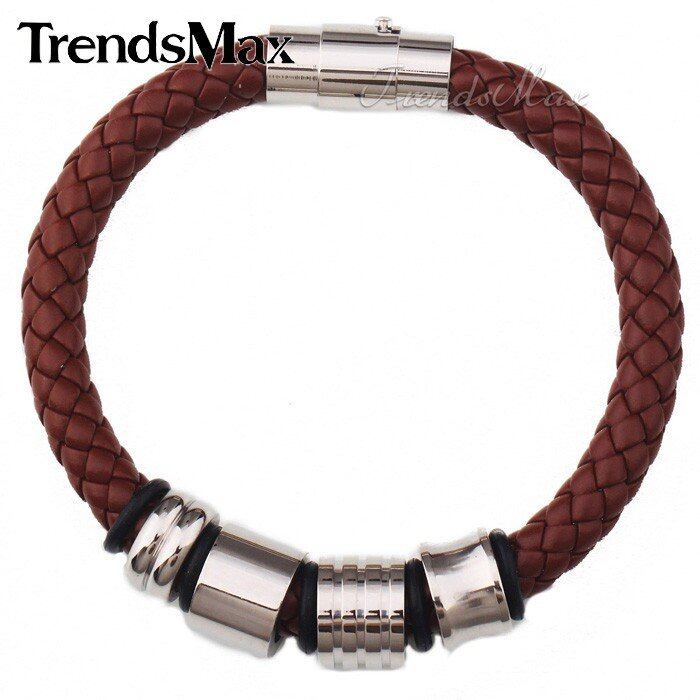 【送料無料】 メンズ ブレスレット レザー ロープ チャーム 黒 ブラック ブラウン リストバンド ステンレス 磁気 留め金 20000136