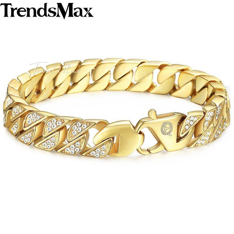 ヒップ ホップ アイスアウト ラインストーン メンズ ブレスレット ゴールド ステンレス ブレスレット メンズ