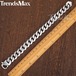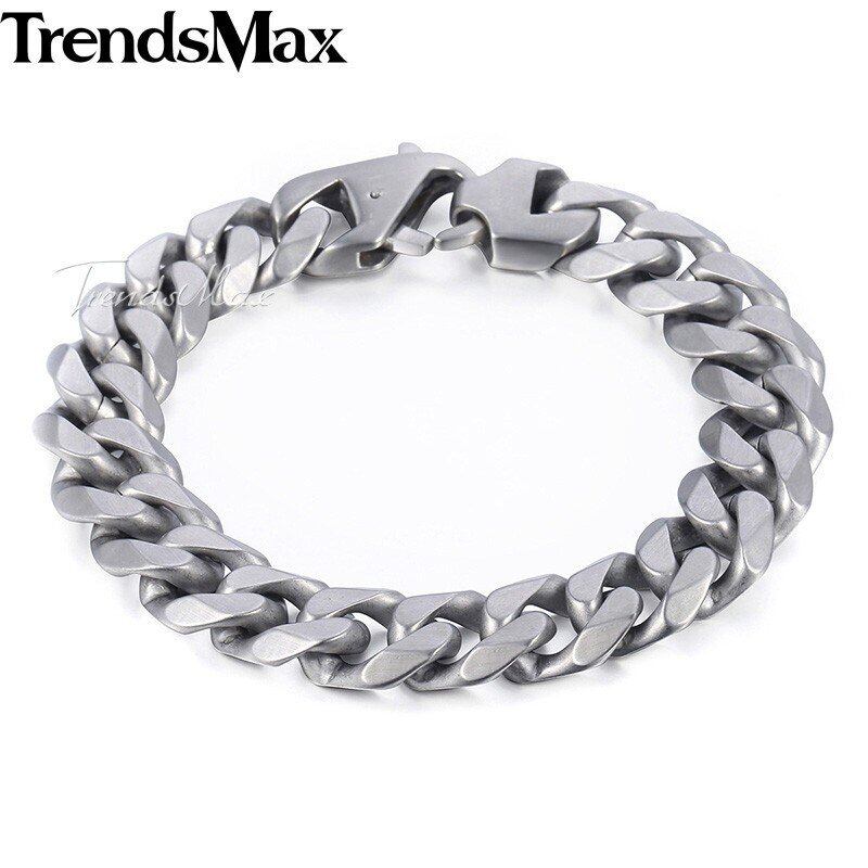 マット ポリッシュ ブレスレット メンズ チェーン 316L ステンレス カット カーブ キューバの リンク シルバー 14.5mm