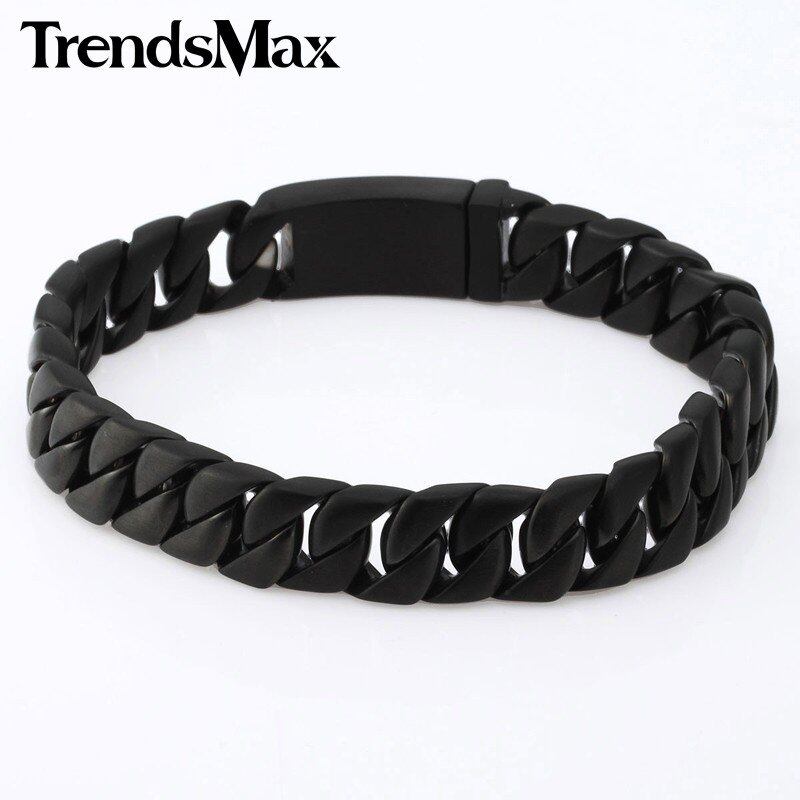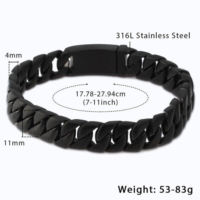 11mm ワイド カーブ キューバの 黒 ブラック 316L ステンレス ブレスレット メンズ チェーン