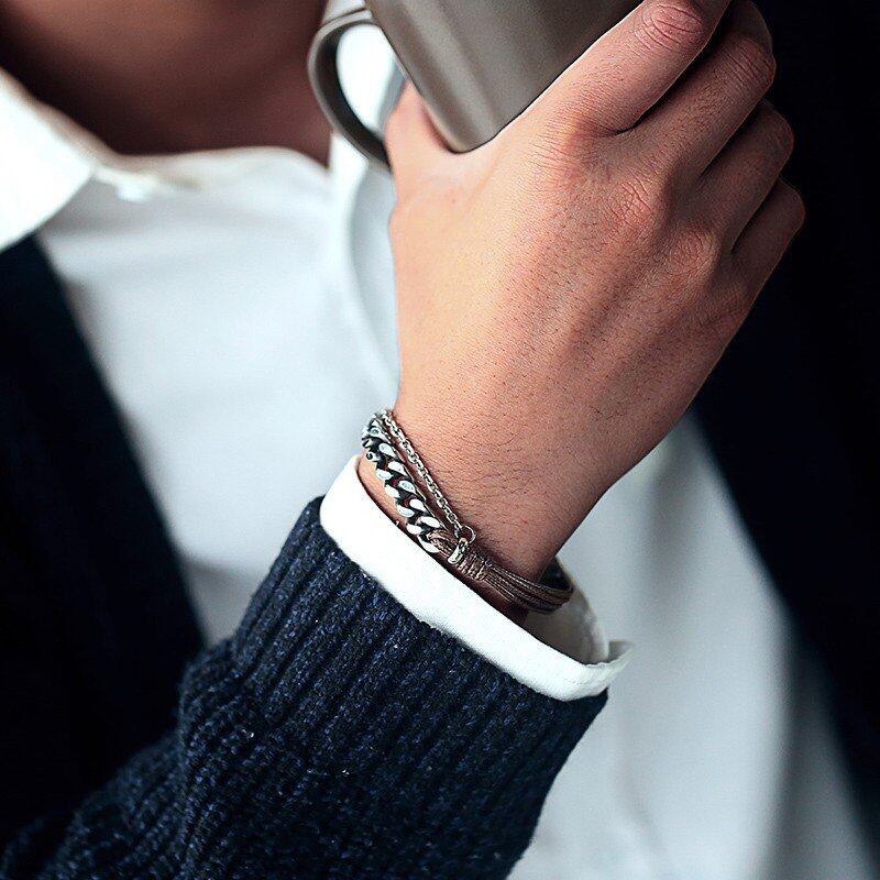 レザー ブレスレット メンズ レディース カップル ステンレス メンズ ブレスレット