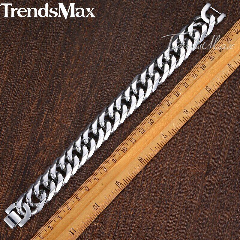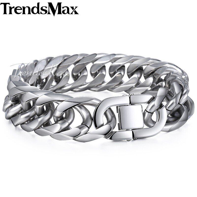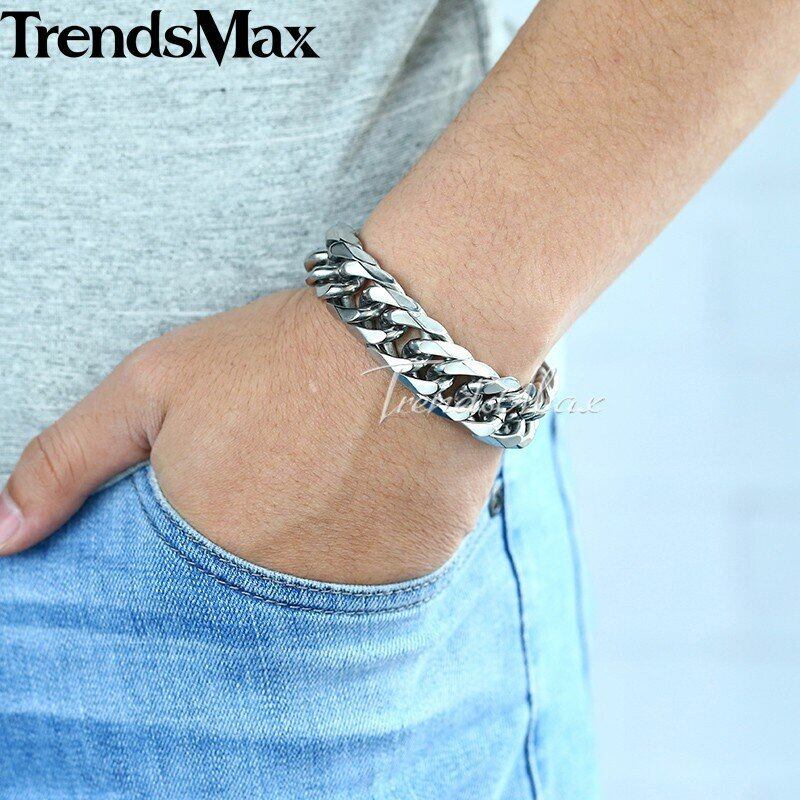 18 19 22mm カット ダブル カーブ キューバの リンク シルバー 316L ステンレス ブレスレット メンズ チェーン