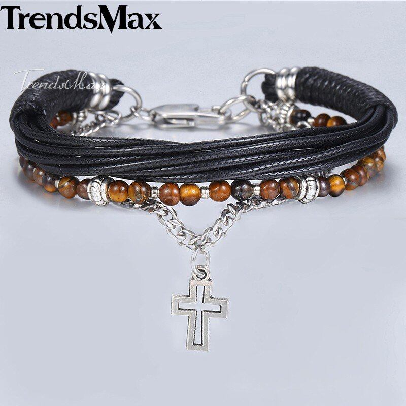 ブレスレット メンズ ステンレス カーブ キューバの チェーン クロス ペンダント チャーム ブラウン 3 メンズ ブレスレット