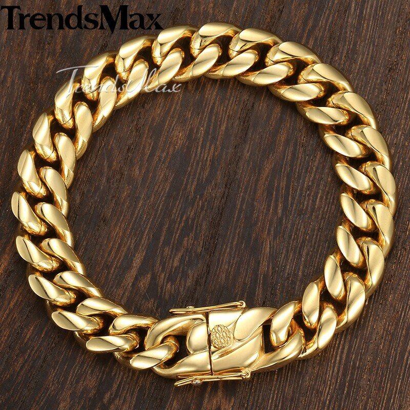 マイアミ カーブ キューバの メンズ ブレスレット チェーン 316L ステンレス ヒップ ホップ シルバー ゴールド 8/12/14mm 9インチ