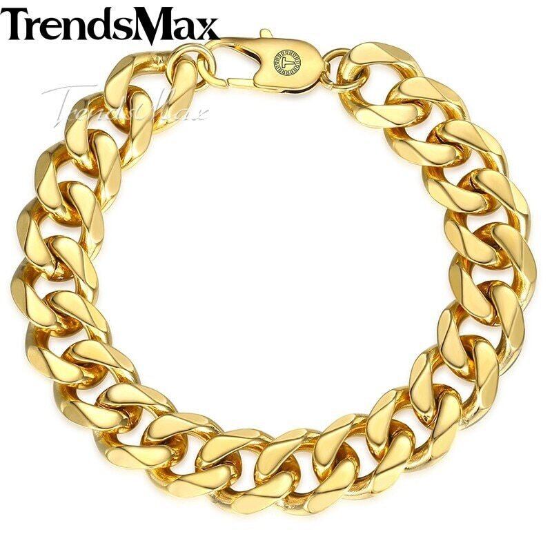 ポリッシュ メンズ ブレスレット ステンレス カーブ キューバの リンク ゴールド シルバー メンズ