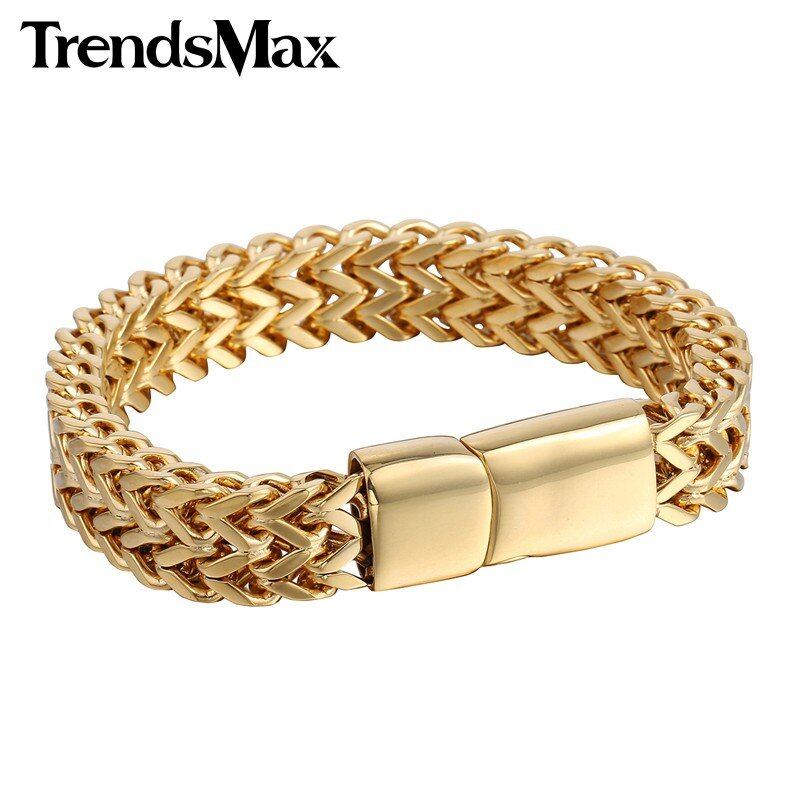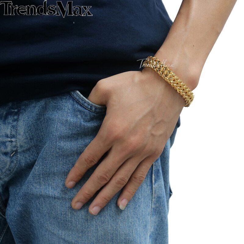 12mm メンズ ブレスレット 316L ステンレス ブレスレット メンズ ゴールド シルバー 黒 ブラック リンク