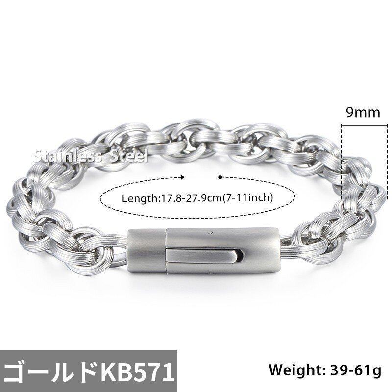 トリプル ケーブル リンク メンズ ブレスレット ステンレス チェーン ガンメタル ゴールド シルバー 黒 ブラック 9mm