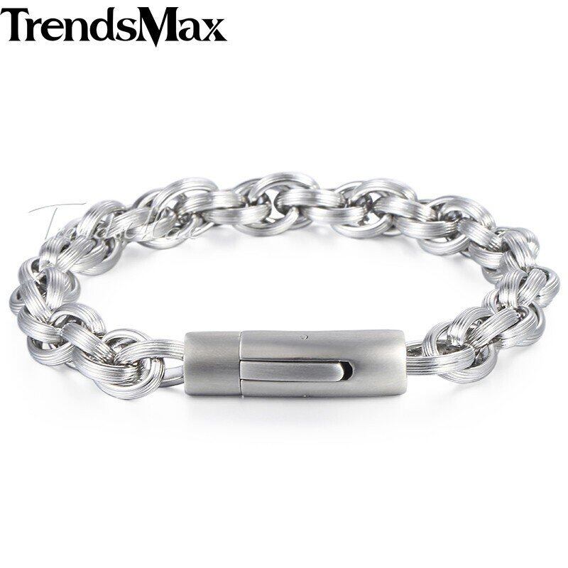 【送料無料】 メンズ ブレスレット トリプル ケーブル リンク ステンレス チェーン ガンメタル ゴールド シルバー 黒 ブラック 9mm 20000698