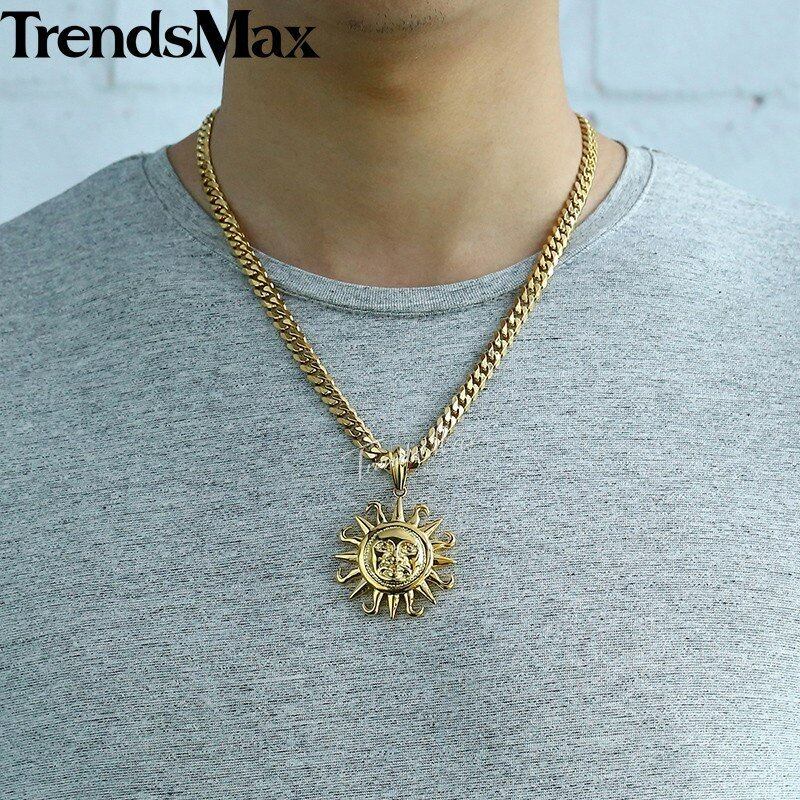 太陽 ペンダント ネックレス メンズ ゴールド 316L ステンレス チェーン メンズ