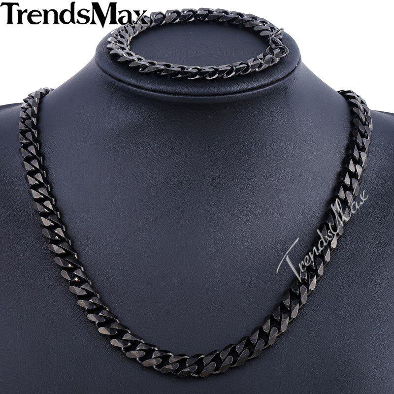 【送料無料】 メンズ セット 11mm ゴールド 黒 ブラック チェーン ステンレス ネックレス ブレスレット ジュエリーセット リンク 20000162
