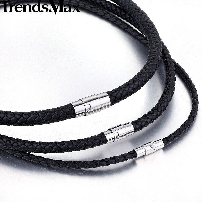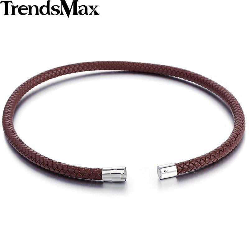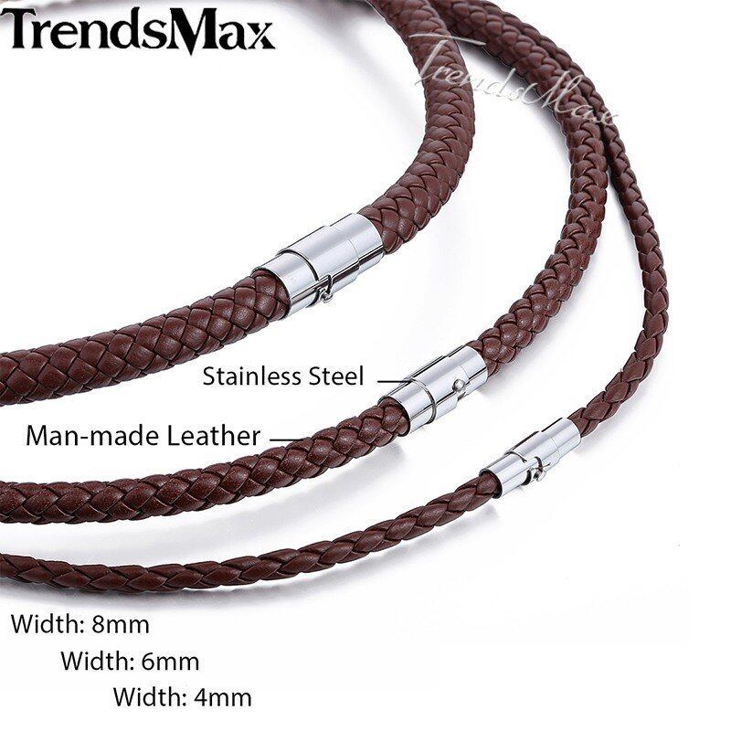 【送料無料】 メンズ ネックレス レザー チョーカー レディース 黒 ブラック ブラウン ロープ チェーン ステンレス 留め金 20000174