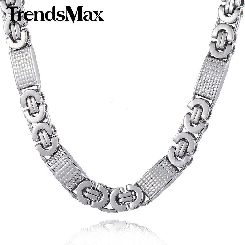 10mm ワイド メンズ チェーン シルバー フラット リンク ステンレス ネックレス