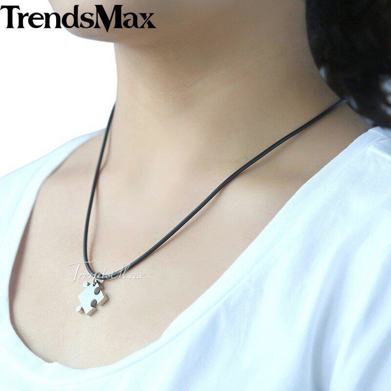 パズル ハート 愛 メンズ ペンダント ネックレス チェーン ステンレス ファブリック ブラウン チェーン ゴールド シルバー 黒 ブラック