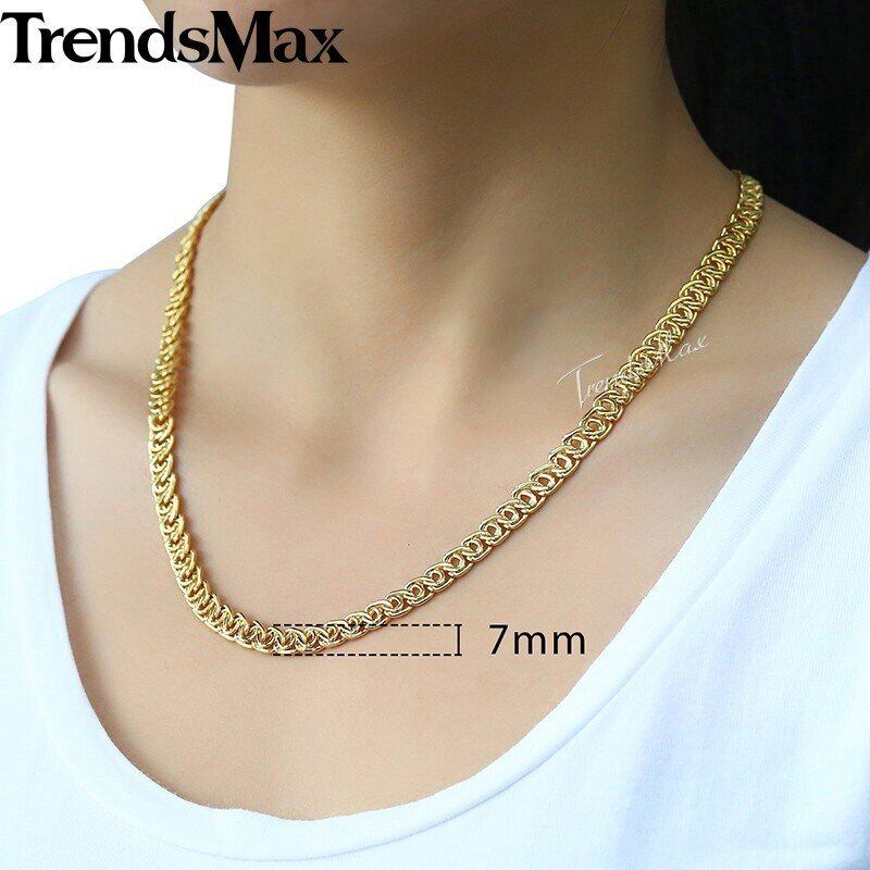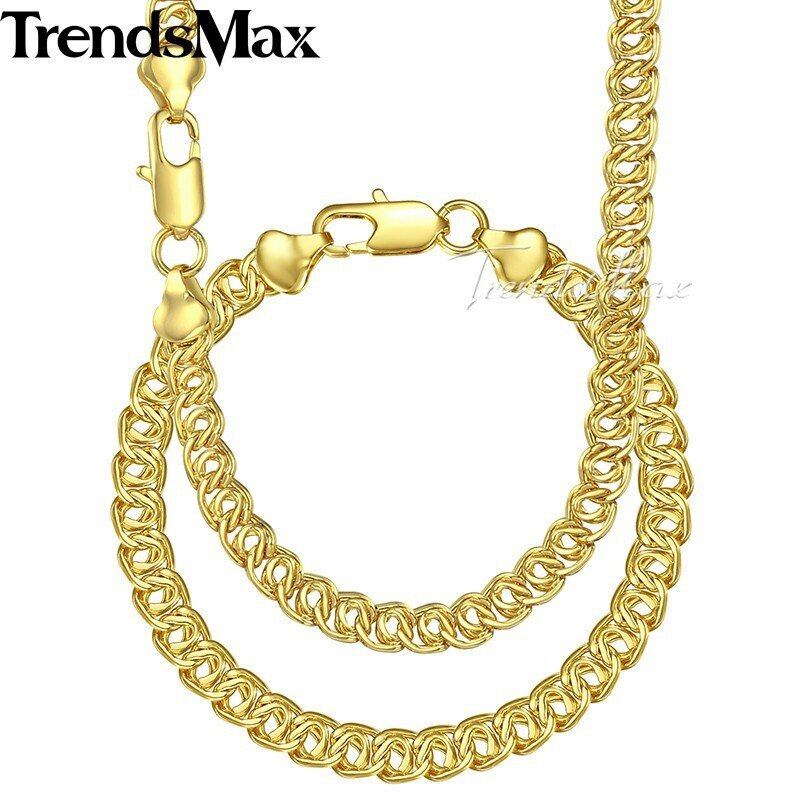 セット 巻き貝 リンク メンズ レディース ネックレス ブレスレット 黄 ゴールド フィル チェーン 7mm